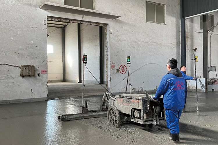 8、?激光發射器獨立布置:大面積整體鋪筑,并保證地面標高一致性,標高不受模板控制,不會產生誤差,大面積分塊施工,可減少施工縫,使地面后期維護費用大為減少