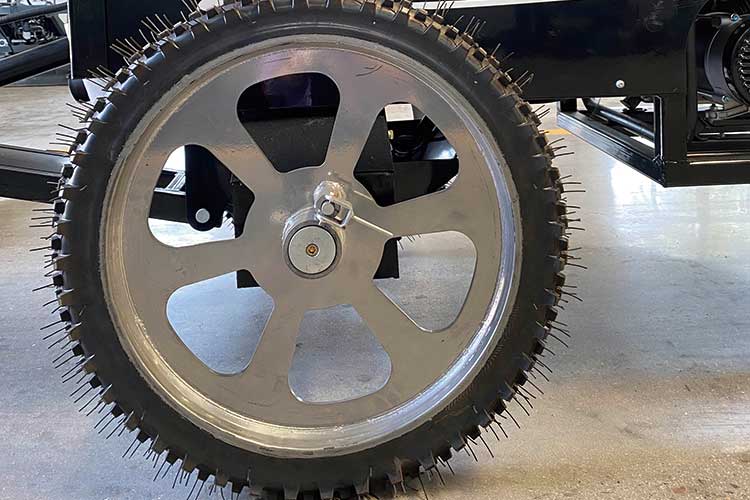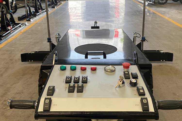 7、?雙輪獨立移動,靈活方便,通過電驅動兩輪行走系統,使得輪子可獨立移動,與整平頭互不影響,采用手動控制輪子的前進、后退、轉向及行進速度,移動非常方便。